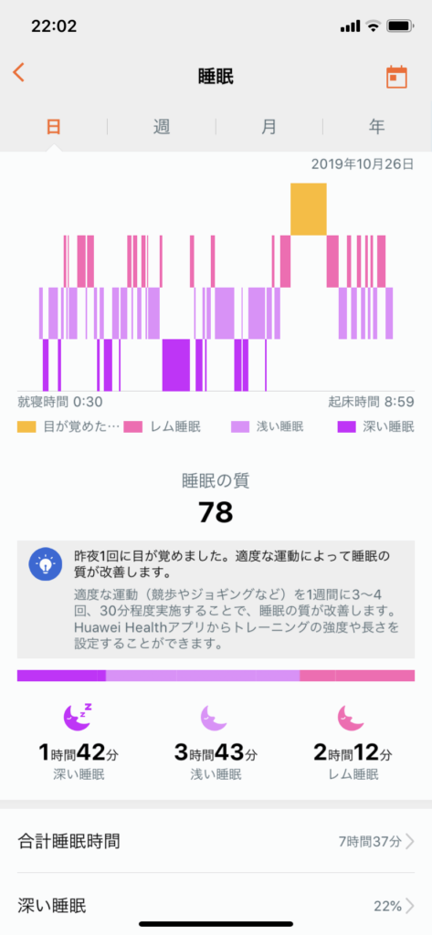 ナチュラス使用した日の睡眠
