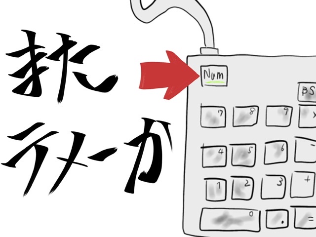 あれ!?テンキー壊れた?とよく見ると大体NUM LOCKがついていがち