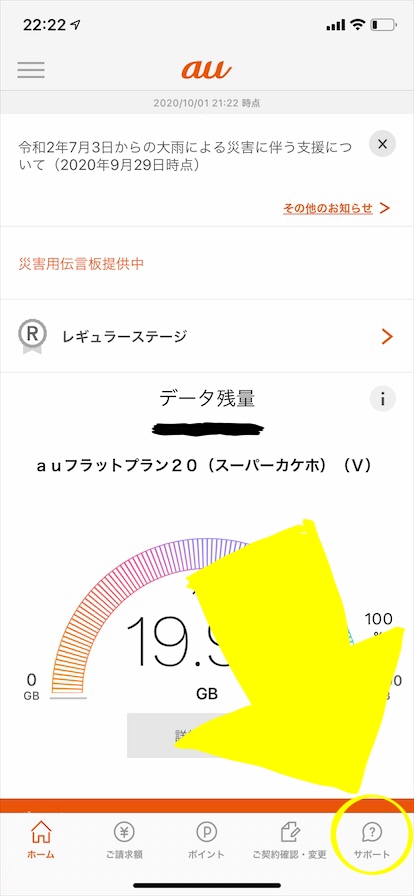 原因を自分なりに探ってみるものの、結局わからず…最終手段としてMy auのサポート機能を使ってみることにしました。
