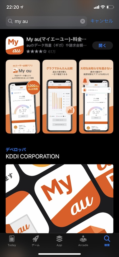 まずMy auアプリをappstoreよりダウンロードします