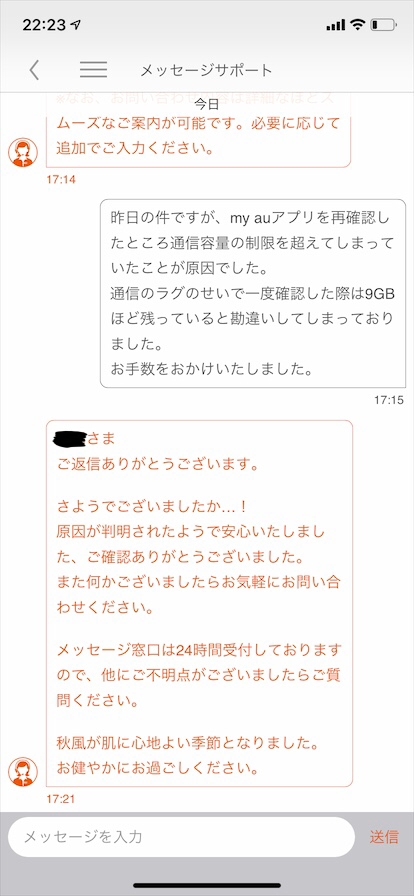 最終的に筆者の確認不足でauは何も悪くないことが発覚したのですが、アドバイザーの方も丁寧に返信してくださり非常に好印象でしたよ!