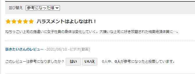 とりあえずFANZAのレビューを覗いてみるとすぐに例文が見つかりました