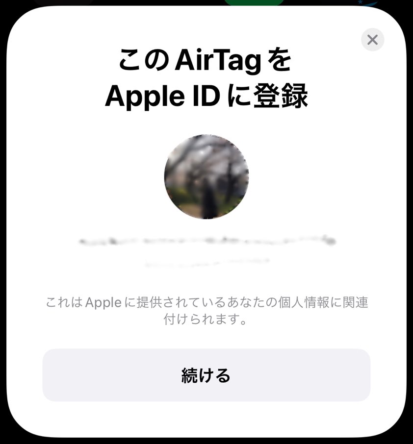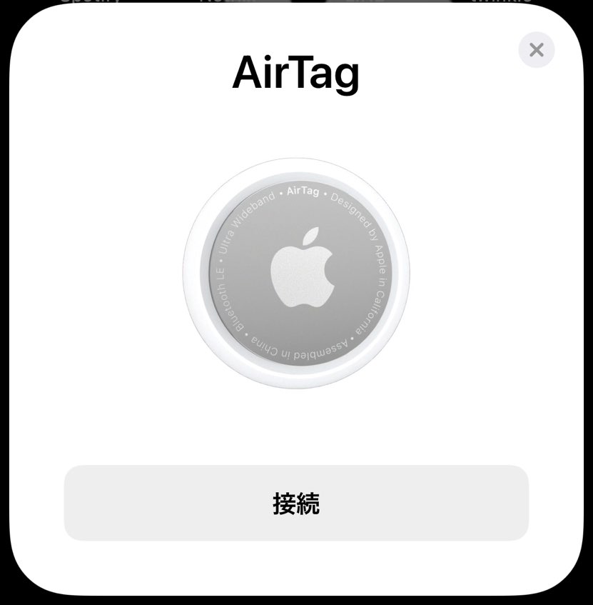 Bluetoothを有効化したiPhoneを開いた状態でAirTagの絶縁体を引き抜くと、iPhoneにAirTagと接続するための画面が表示される