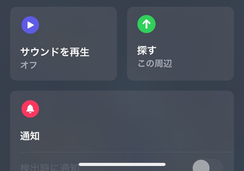 部屋の中で行方不明になってしまった時はただ単に矢印をヒントに探すだけでなく、AirTagから音を出すことが出来るのでよりスムーズに無くしものを探すことが出来る