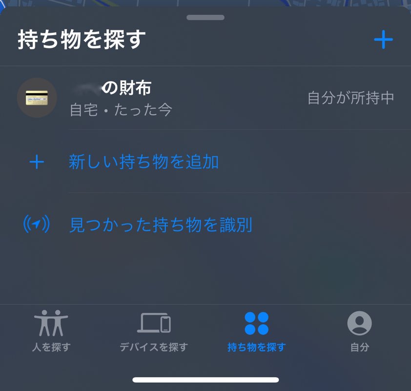 「持ち物を探す」タブをタップしよう、AirTagの設定が完了していれば設定した名称が表示されているはずなのでタップしよう!