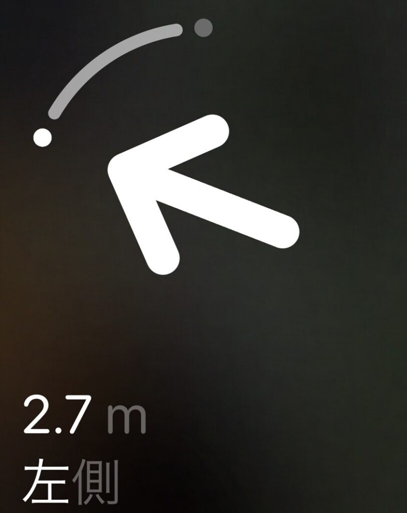 探しているAirTagまでの距離と方向が矢印で示されるぞ!探せ!