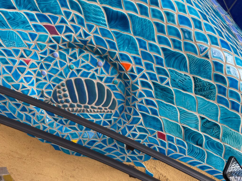 壁一面に印象的に張られているタイルにはジブリ作品の様々なキャラクターが隠れていたりもします