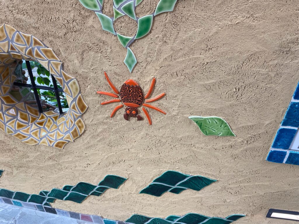 何でもない通路の壁にはとなりのトトロのOPで登場する虫たちもいます!懐かしい!