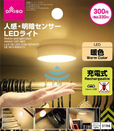 なんと充電式!さらに人感センサーと明暗センサー付きでお値段たったの330円!