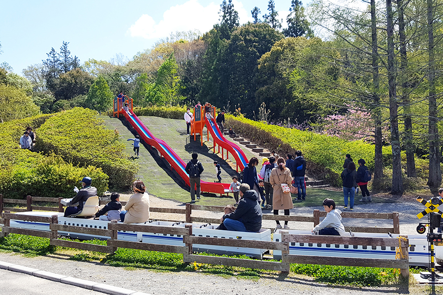 プール・ため池・アスレチック・イカダ・ミニSLと広い公園内には見どころがたくさん