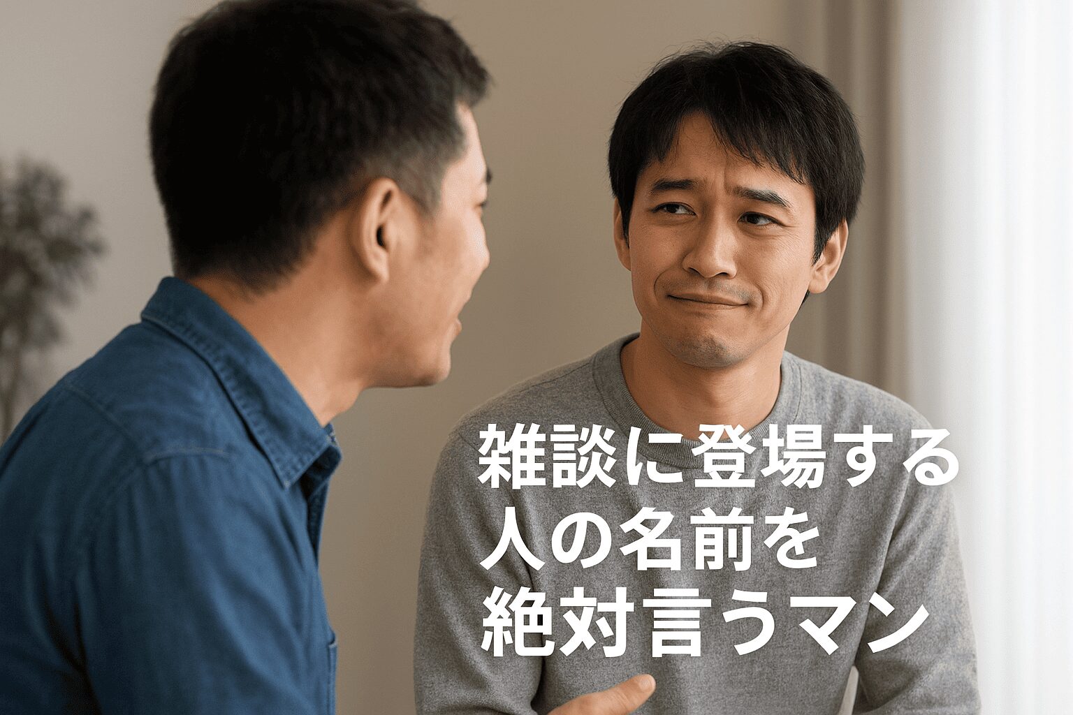 職場の先輩がいる。仕事に情熱を燃やすタイプで非常に尊敬にあたる人物だ。が、しかし。その先輩は「雑談に登場する人の名前を絶対言うマン」なのである。
